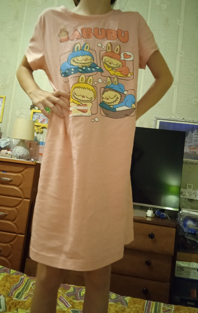 Яркий принт с Лабубу придаёт изделию индивидуальность, а стойкий рисунок сохраняет насыщенные краски даже после многократных стирок. Это платье-сорочка станет любимой вещью для девочки: в ней удобно спать, играть и проводить время дома.